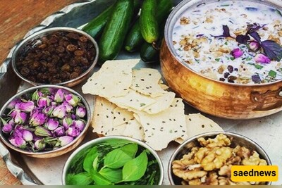 SAEDNEWS: This Persian cold yogurt soup (Ab Doogh Khiar) is destined for those hot summer days and it can be made as thick or as thin and is filled with cucumbers, raisins, walnuts, and herbs.