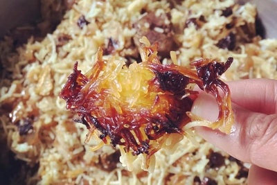 This royal version of Reshteh Polo combines rice, toasted noodles, and meatballs with apricots and dried fruit, creating a dish perfect for festive gatherings. It's easy to prepare at home, so let's get started!
