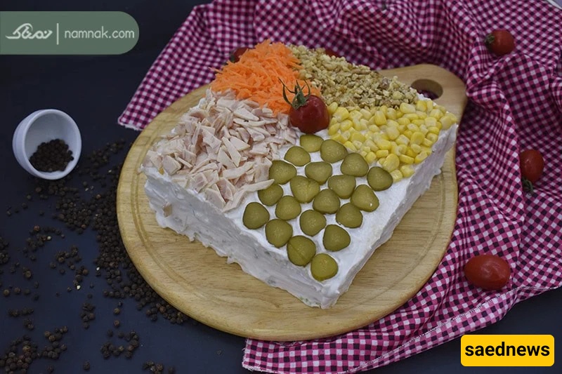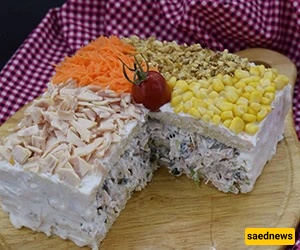 SAEDNEWS: Chicken cake is a simple and delicious appetizer that you can customize with ingredients of your choice and shape it as you like, from a large mold to individual servings.