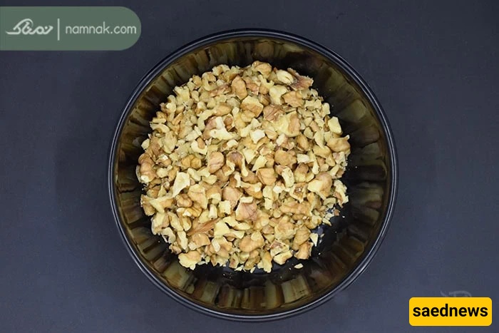 Chop the walnuts finely, either with a knife, grater, or grinder.