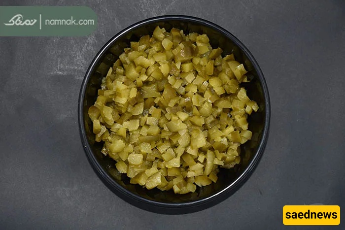 Wash and finely dice the pickles.