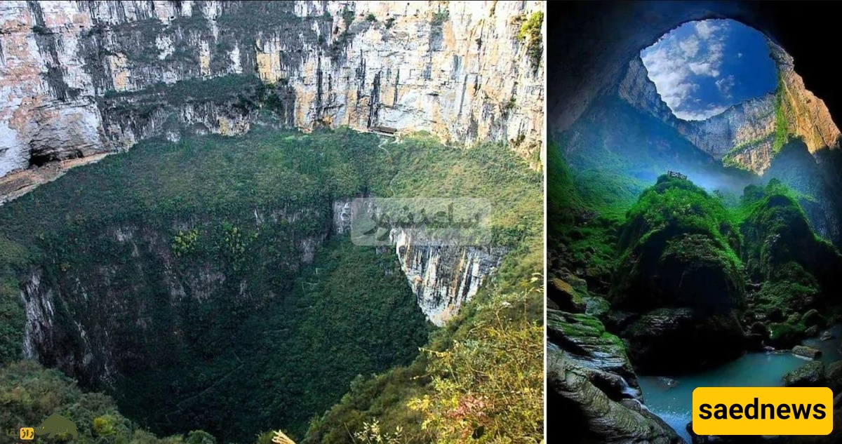 SAEDNEWS: The Heavenly Pit in China, the world’s largest natural sinkhole, plunges over 660 meters deep with a terraced structure. Strange air currents, echoing sounds, and “hanging forests” make it a mysterious natural wonder.