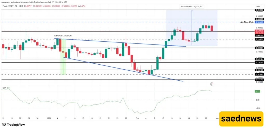 Nonetheless, downside risks persist if holders take profits. Falling below the $0.666 support level would weaken the current structure, potentially pushing PIPPIN toward $0.514. Losing this level could extend losses to $0.385 and invalidate the bullish outlook.
