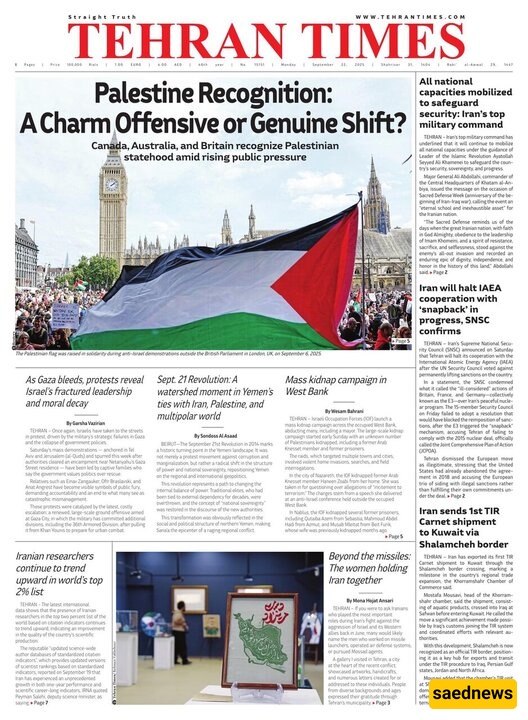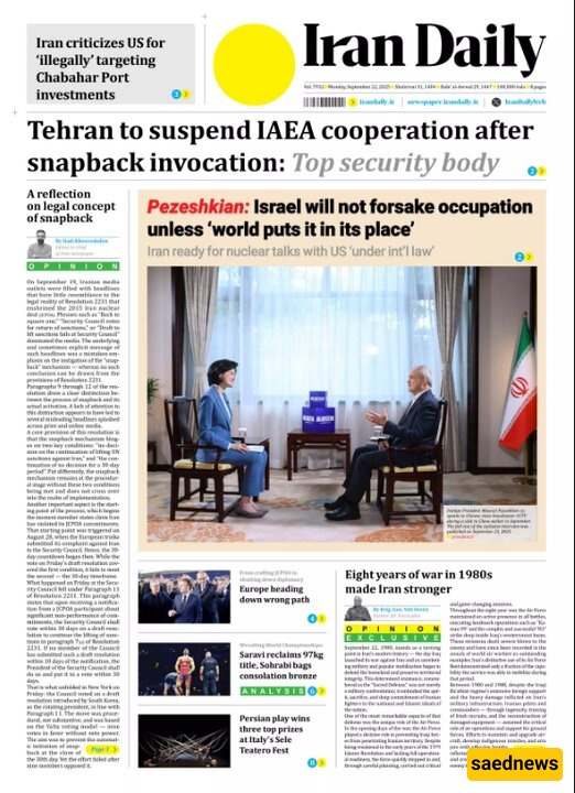 SAEDNEWS: Here are the front pages of Iran's English language dailies on Monday, September 22.