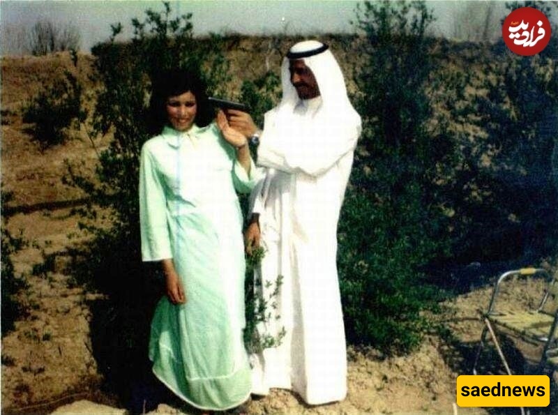According to the political news section of Saed News, the photo you see here shows Saddam Hussein, the former dictator of Iraq, in the early 1960s during his engagement to his first wife, Sajida Tulfah. In this striking image, Saddam poses as if aiming a gun at the temple of his fiancée.