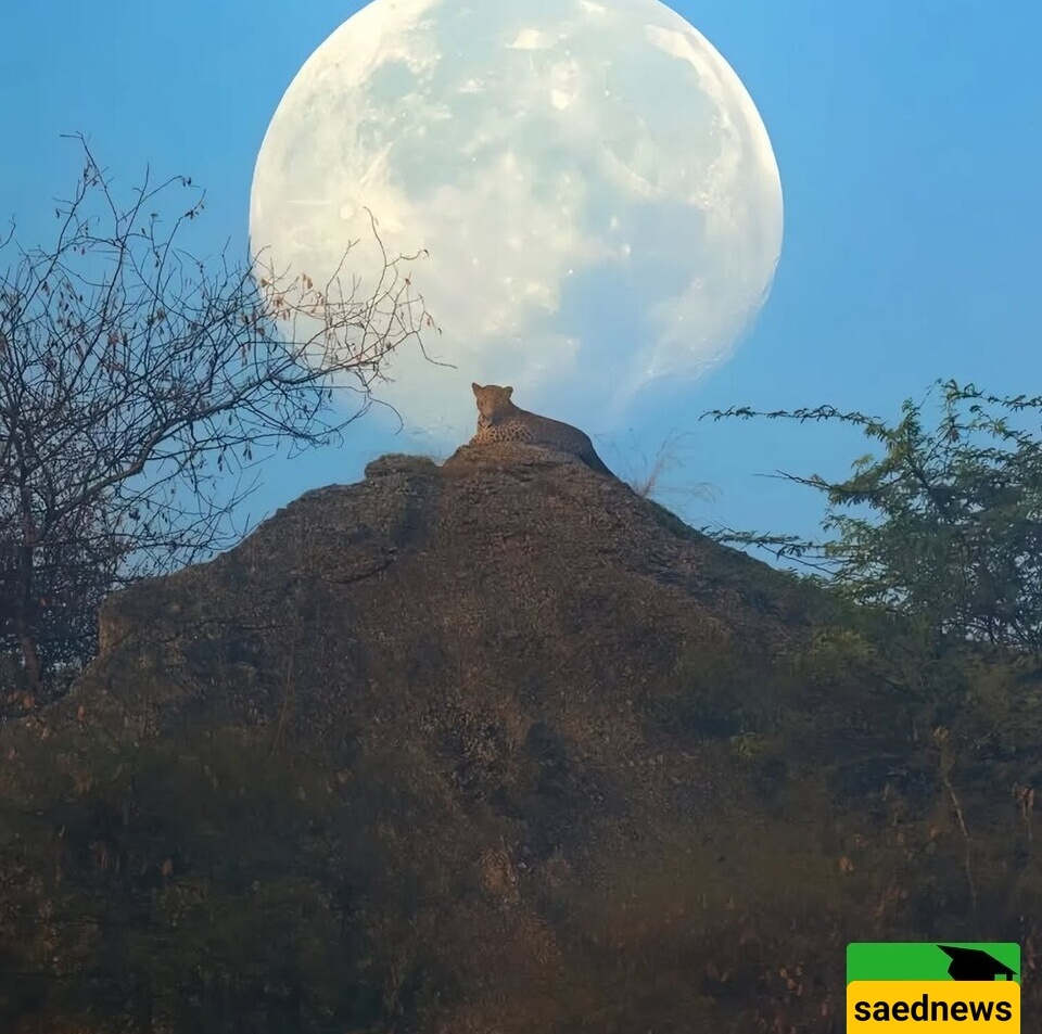 SAEDNEWS: When the full moon shines in a star-studded sky, spilling its silvery light onto the earth, a magical moment is captured. Amid these remote, sandy dunes, the Indian leopard—a symbol of nature’s power and beauty—stands beside the full moon with graceful, silent movements, creating a breathtaking and dreamlike scene.