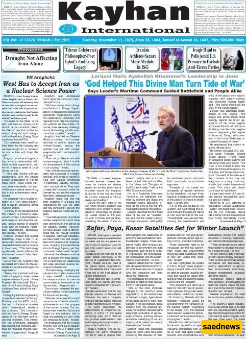 On November 11, Iran’s English dailies highlighted the country’s evolving role in global affairs, domestic policy updates, and cultural developments. Front pages feature photo-led stories on international diplomacy, economic initiatives, and social issues, reflecting a mix of national priorities and regional perspectives. The design emphasizes visuals and concise reporting, making it easy for readers to grasp the day’s top stories at a glance.