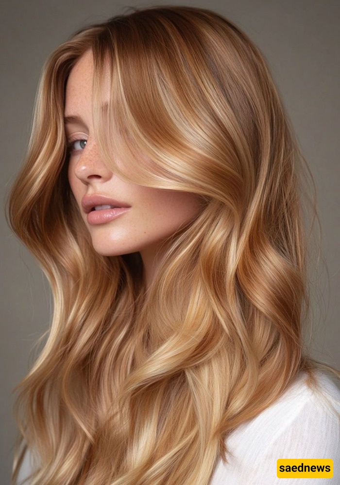 A warm, natural base produces the best results for honey blonde highlights. This base ensures that the highlights appear bright and harmonious, without harsh contrasts. It’s ideal for fair to warm skin tones, giving hair a sunny, natural glow. This combination is a great example of a modern, attractive, yet natural-looking highlight style.