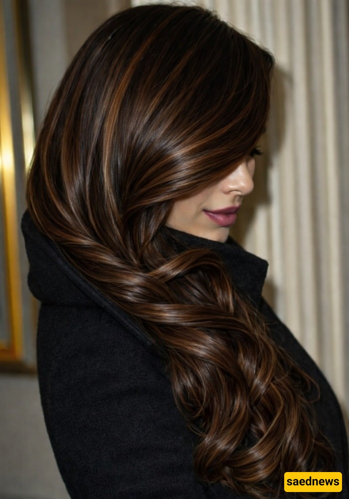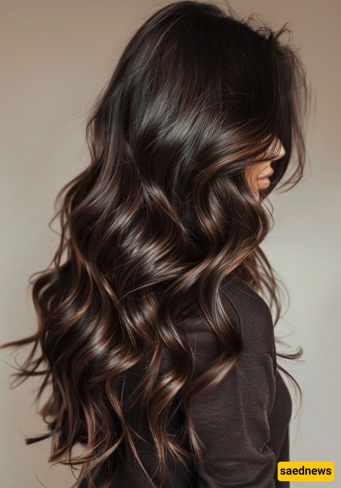 Chocolate brown highlights look very sophisticated and seamless on a natural dark brown base. This combination ensures that the highlights appear natural, without strong contrasts, making it perfect for those seeking a modern, uniform, and stylish look. Using a dark brown base with chocolate highlights is one of the most popular combinations and works well with warm skin tones and natural hair shades, producing a professional finish.