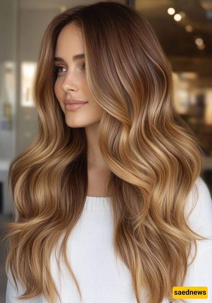 This combination is especially suitable for warm skin tones, giving the face a fresh look and enhancing the overall style of the hair. For optimal results, start with a base close to the natural hair color and apply highlights a few shades lighter.
