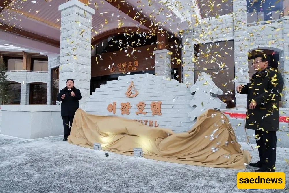 According to the political desk of Saed News Agency, North Korean leader Kim Jong Un, accompanied by his daughter Ju Ae, inaugurated a new luxury tourist hotel in the mountainous region of Samjiyon.