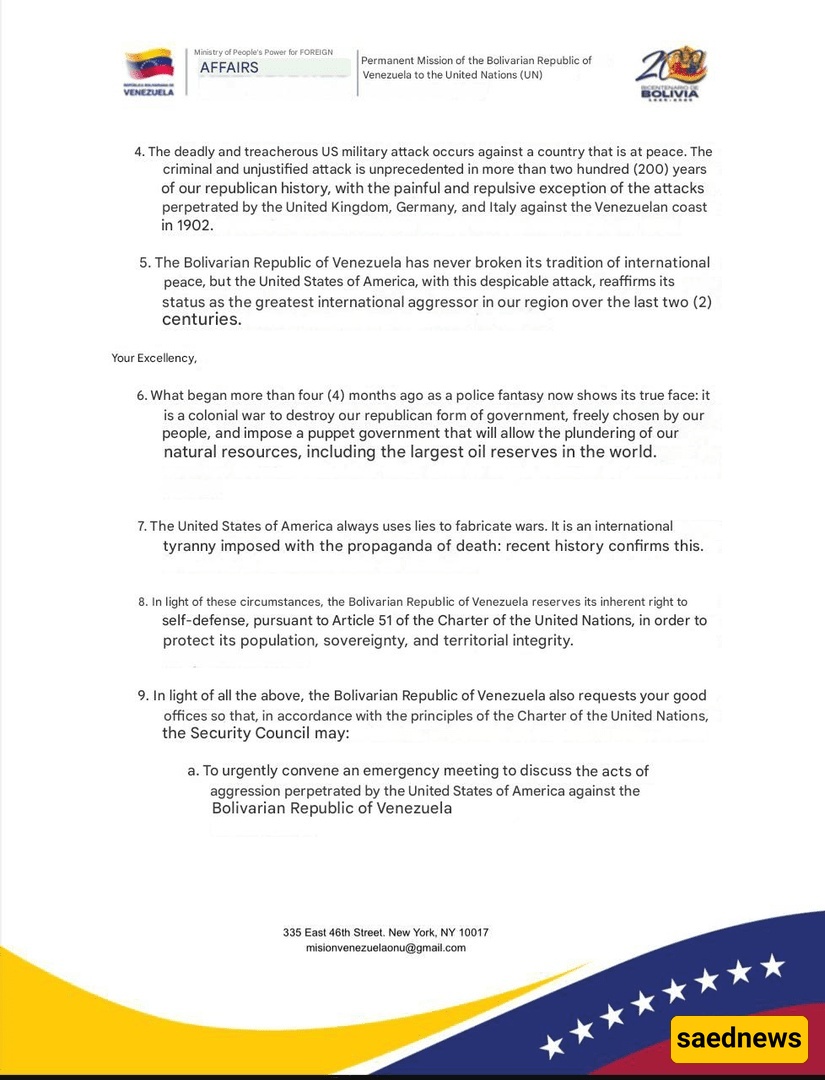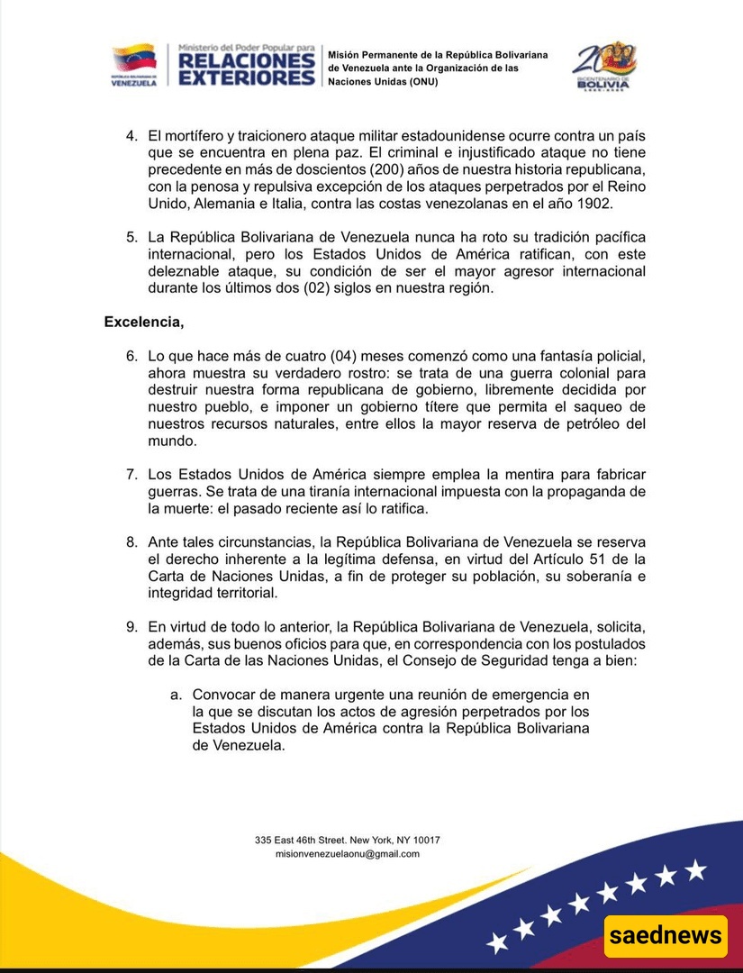 SAEDNEWS: Venezuelan Foreign Minister Calls for UN Security Council Emergency Meeting Following U.S. Attack