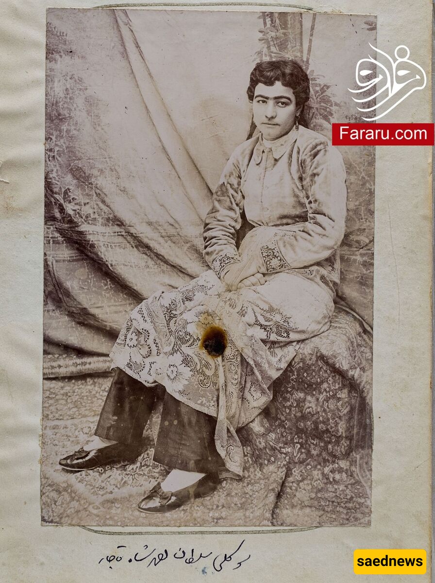In the photo album of Nosrat-od-Dowleh Firouz, a politically influential figure during the Qajar era, there are images of women identified as concubines of Ahmad Shah and Mohammad Hassan Mirza