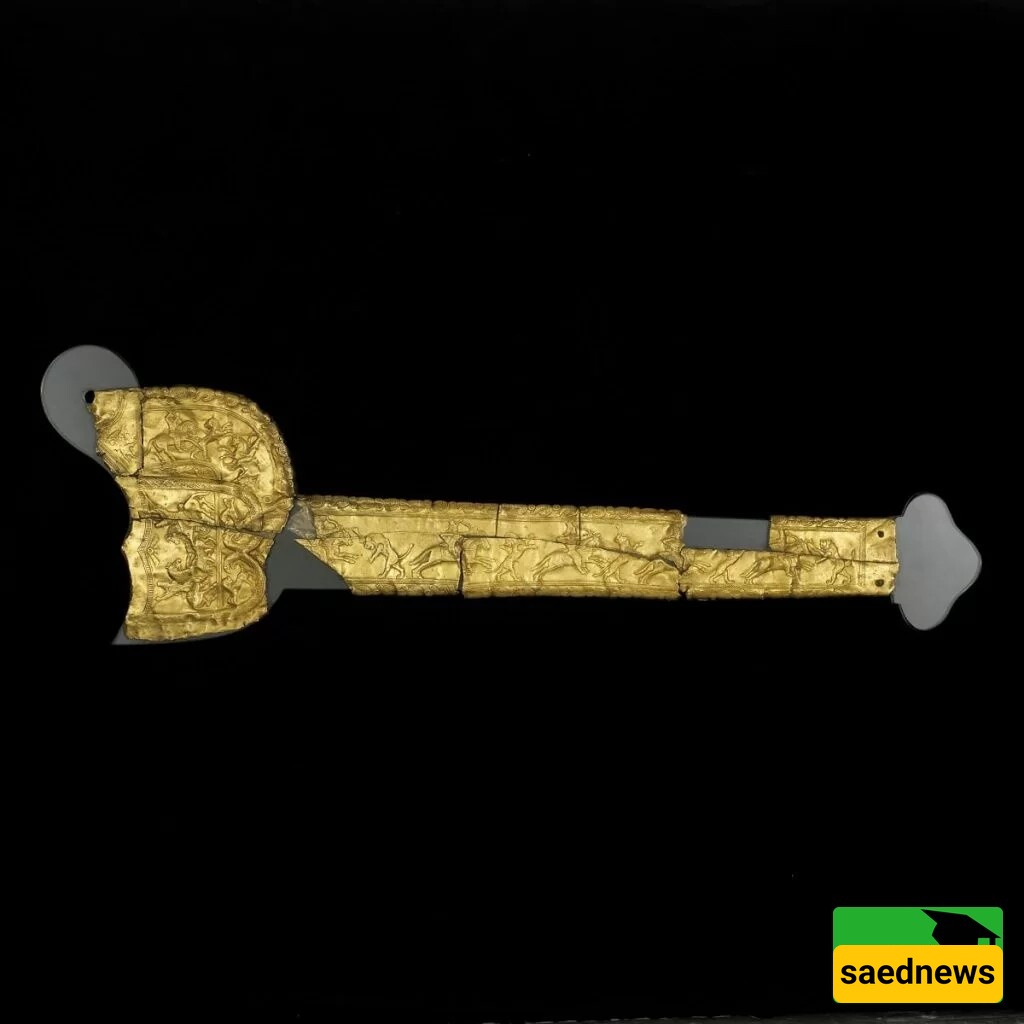 Similar objects appear in Achaemenid art, particularly the stone carvings at Persepolis, as well as discoveries in Susa and elsewhere, suggesting the treasure belongs to the Achaemenid period. The sword sheath, for example, closely resembles a sword depicted in Persepolis reliefs. While the creators remain unknown, the artifacts were likely owned by the Achaemenid royal family.