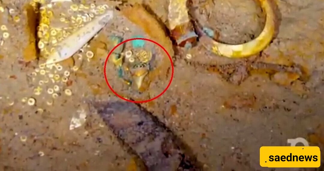 Digital scans reveal a gold necklace with a Megalodon tooth attached. The Megalodon was a colossal shark that ruled the oceans more than 23 million years ago.