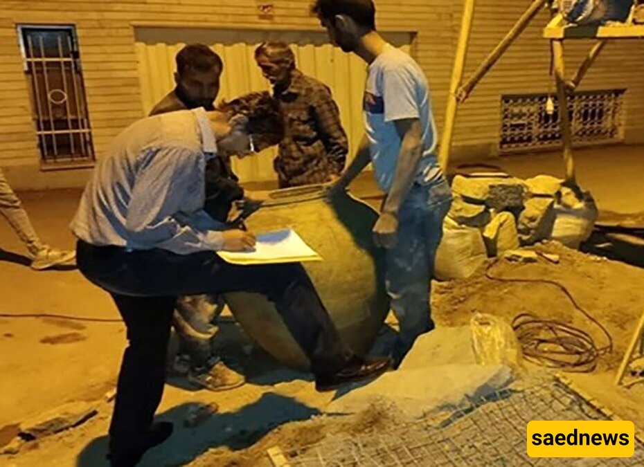 According to the Saed News Society Desk, the commander of the Cultural Heritage, Tourism, and Handicrafts Protection Unit in Zanjan spoke to reporters today, announcing the discovery of a large clay jar, whose appearance indicates its historical significance. The artifact was uncovered by local water and sewage department workers during street excavation.