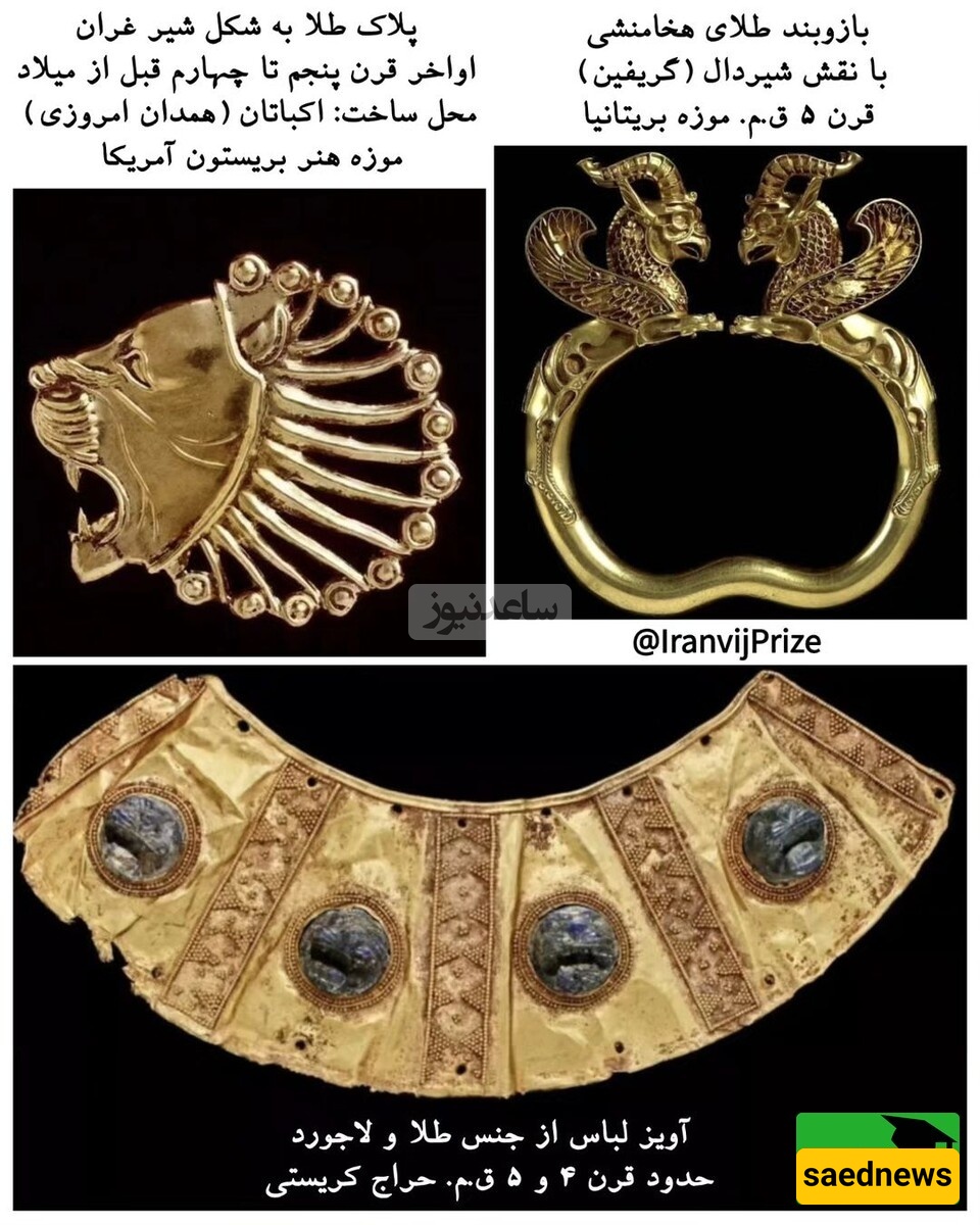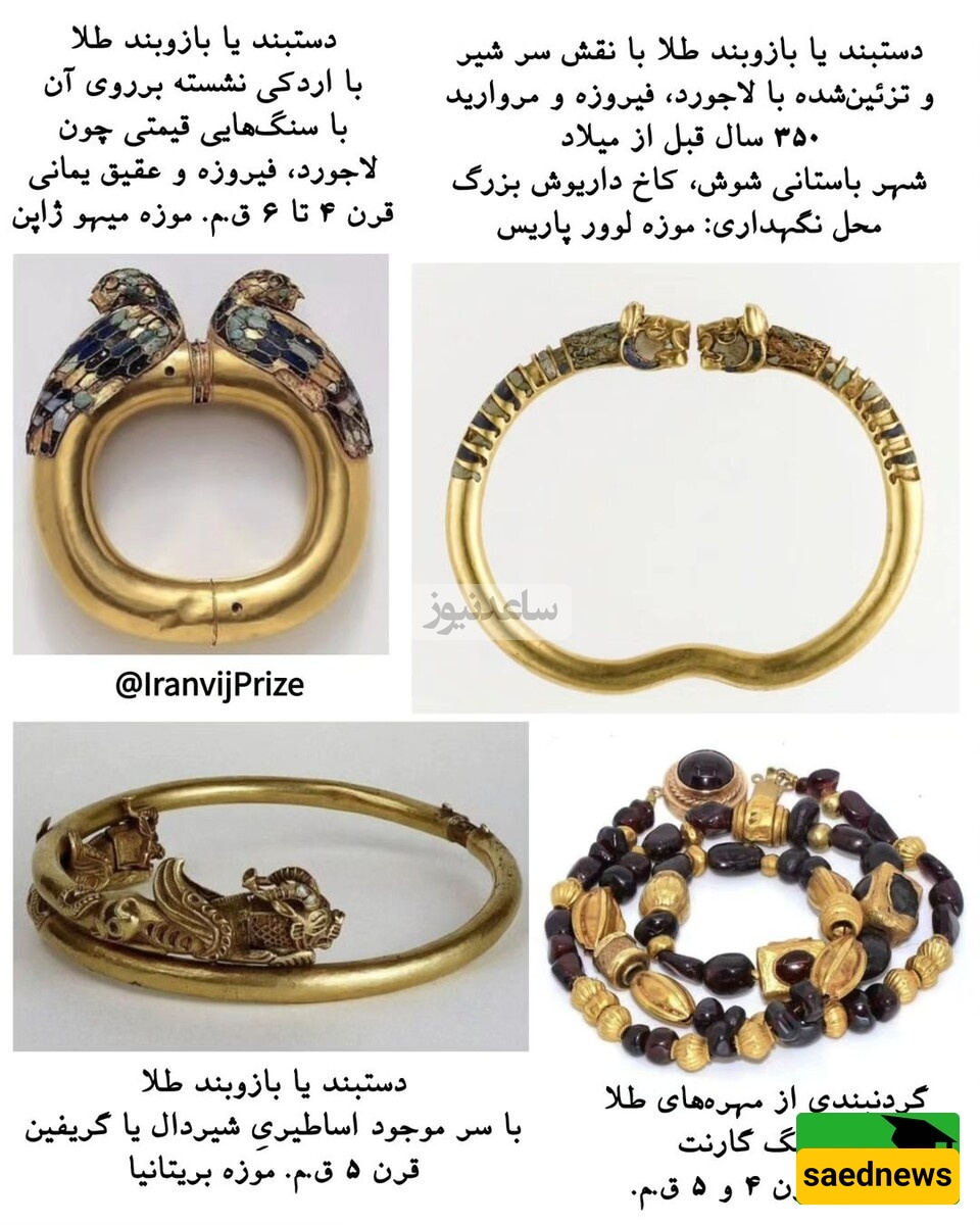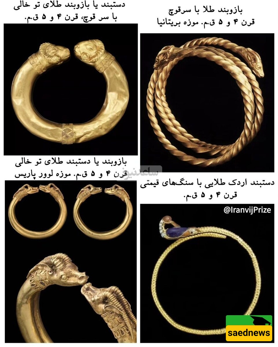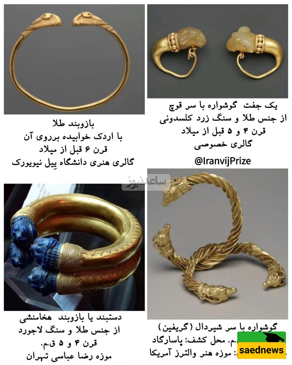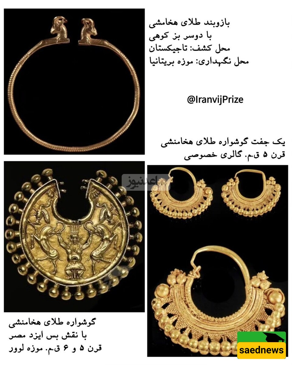 SAEDNEWS: Casting and the creation of metal objects in gold, silver, and steel were common during the Achaemenid period. Iran boasted skilled artisans who crafted exquisite gold jewelry. Explore images of the unique jewels from this era.