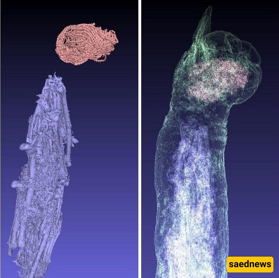 SAEDNEWS: A 3D scan of a cat mummy shows the presence of three tails and five legs wrapped within the mummy’s linen. Researchers have proposed various explanations for this unusual discovery.