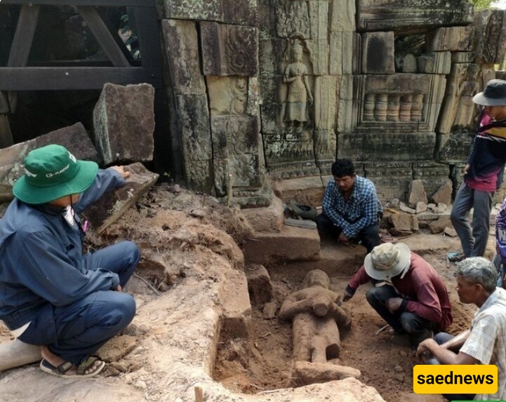 SAEDNEWS: Angkor Wat is a complex of temples built in the early 12th century for King Suryavarman II in Cambodia, serving as his state temple and capital. Now, one of the gate guardians of this historic site has been uncovered after centuries beneath the soil.
