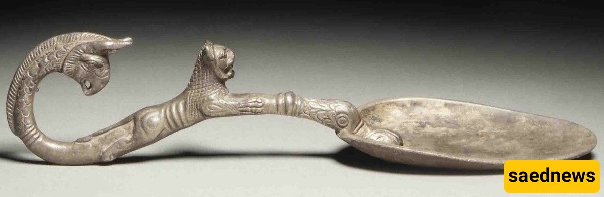 At the end of the spoon, the head of a legendary bird resembling an eagle can be seen, embodying the myths of ancient Iran. These designs not only reflect visual and artistic beauty but also express the cultural beliefs and symbolism of the Achaemenid era. With the care and precision employed in its creation, this spoon represents the grandeur and advancements of craftsmanship in ancient Iran.