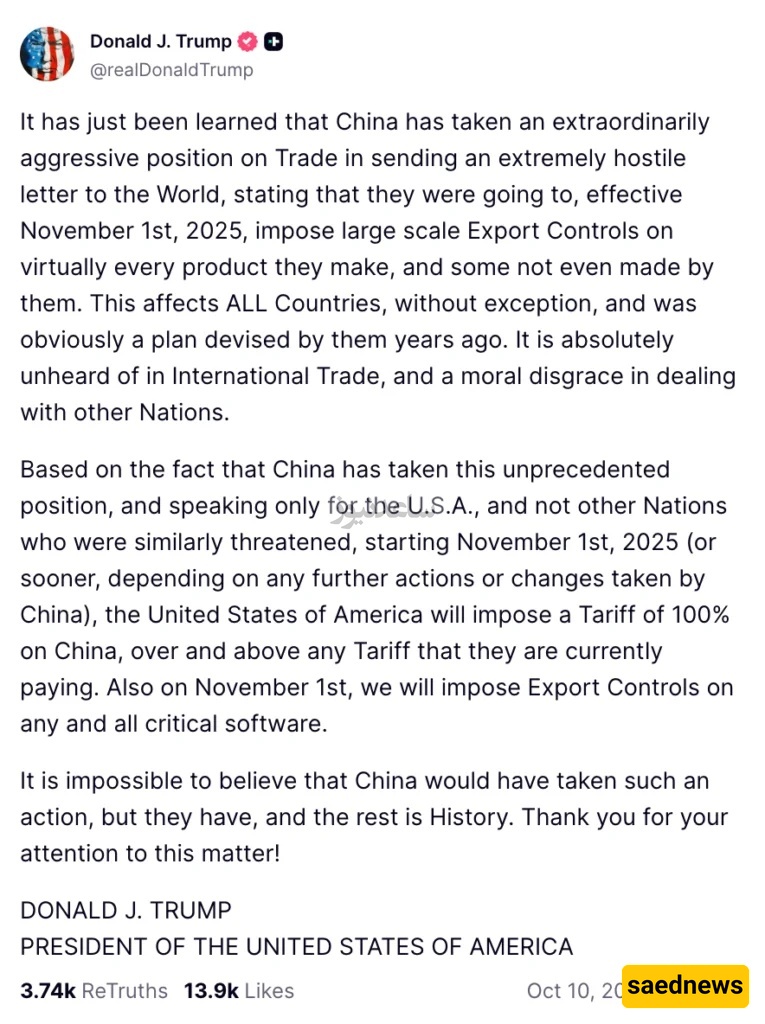 SAEDNEWS: Trump’s Announcement of 100% Import Tariffs on China Sparks New Wave of Shock, Sending Bitcoin and Altcoins Plummeting