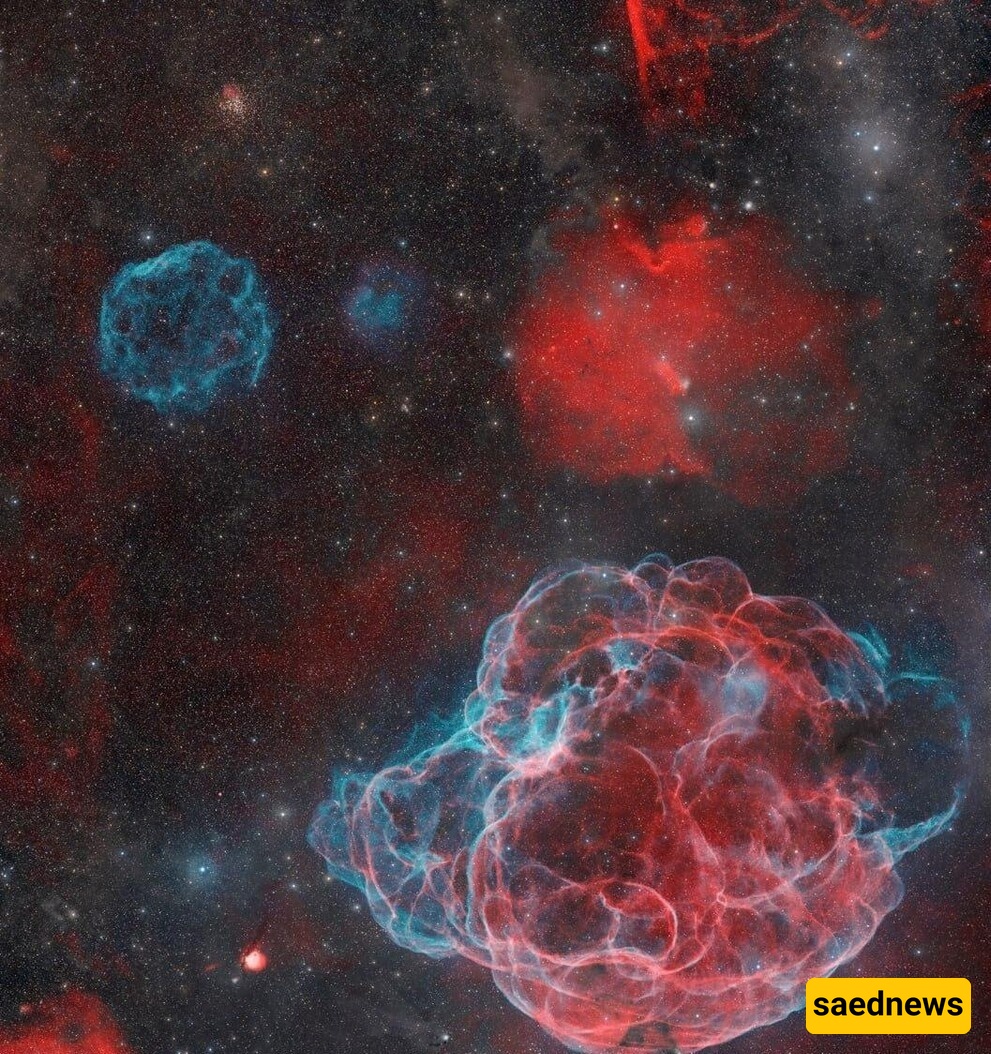 According to the Science Service of Saed News, NASA’s latest image, captured at the Oukaimeden Observatory in Morocco, reveals two distinct remnants of supernova explosions (SNRs).