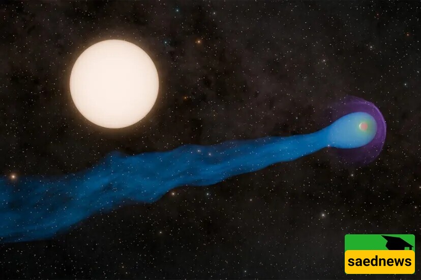 According to the Science Service of SaedNews, a distant world near our solar system sports a colossal tail trailing behind it. As it orbits close to its parent star, the tail stretches to a length equivalent to 40 Earths. This enormous structure, formed from gas escaping the planet’s atmosphere, is blown outward like a giant windsock by stellar winds.