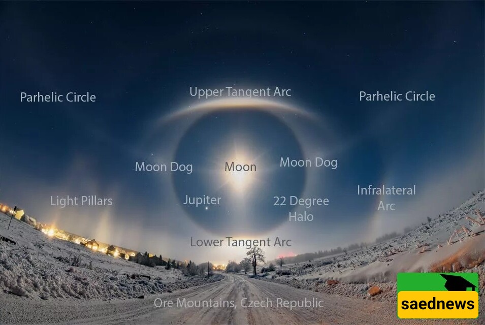 NASA’s Image of the Day, captured last week over the Ore mining region in the Czech Republic, shows a breathtaking view of the moonrise. In the photo, the moon rises through misty, icy air, revealing this spectacular phenomenon. The image features parhelia (moon dogs), tangent arcs, halos, and a parhelic circle.