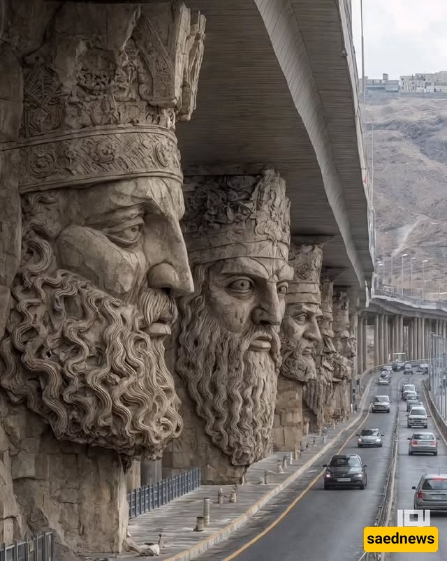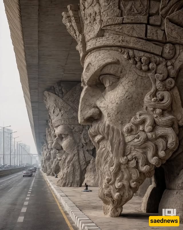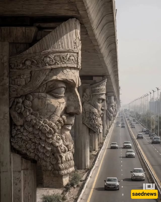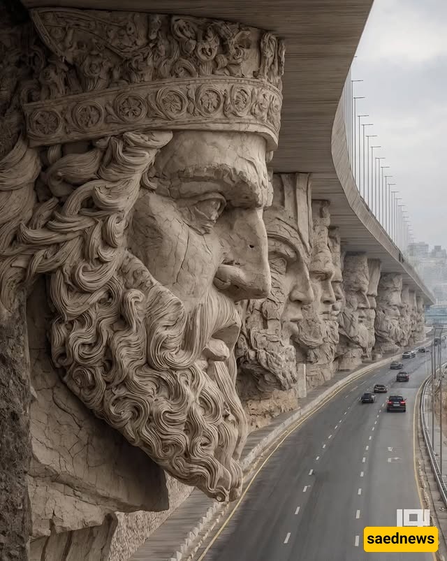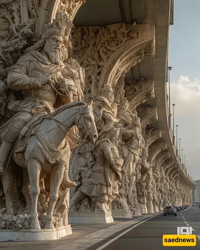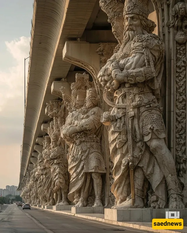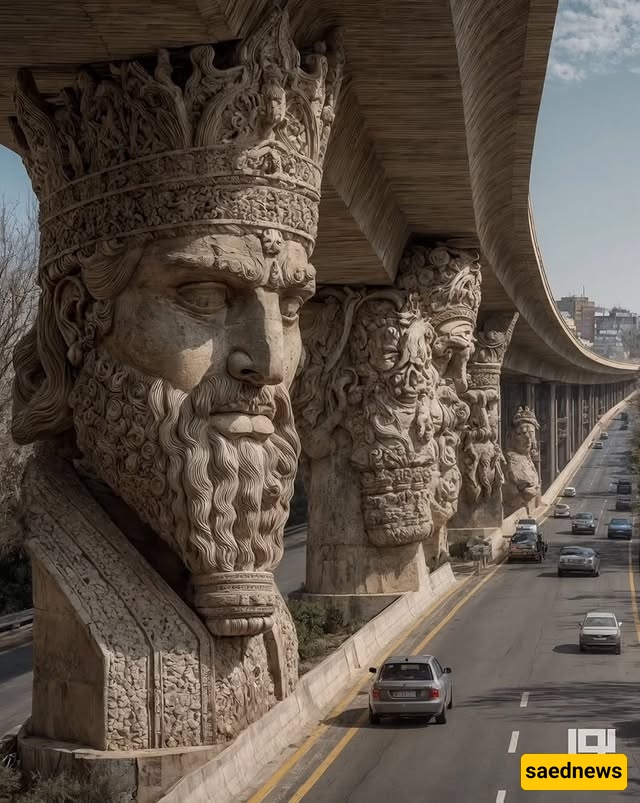 SAEDNEWS: At the city’s heart, a striking bridge rises, its columns inspired by Iran’s ancient myths. Each tells a legendary story, blending art, history, and AI-driven modern creativity in one stunning structure.