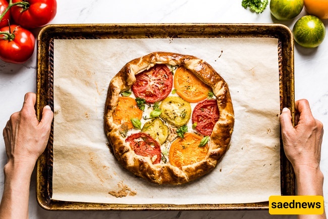 Galette is a type of dessert from the pie and tart family, originating in France. A galette is a layer of dough filled with a variety of ingredients and then baked in the oven. Galette dough is used to make various fruit desserts as well as dishes with vegetables. Tomato galette is a type of galette made with a combination of vegetables and cheese, which is both delicious and unique.