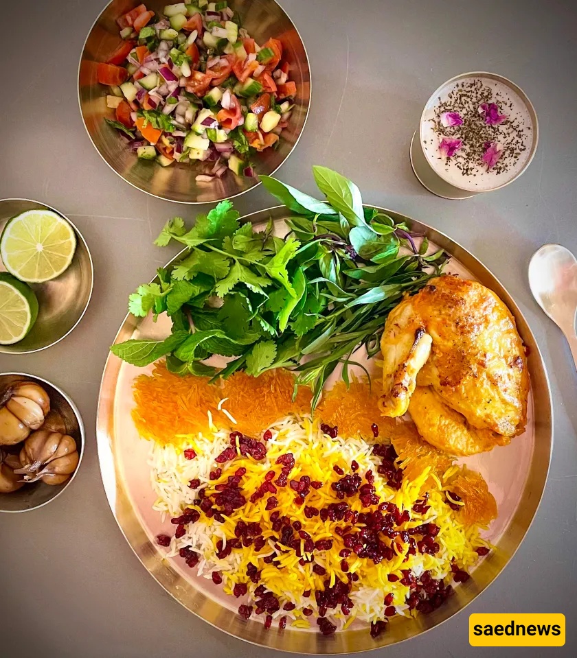 SAEDNEWS: Zereshk Polo with Chicken is a beloved Iranian dish, combining saffron rice, chicken, barberries, and pistachios. The sweet-tart barberries and aromatic saffron create a uniquely delicious flavor.