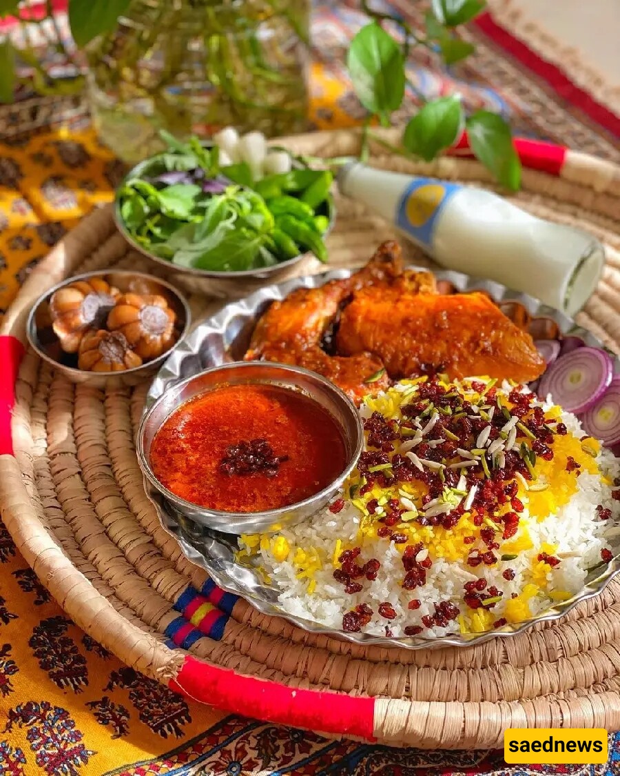 According to the Family Magazine service of Saed News, Zereshk Polo with Chicken is one of the most famous and delicious Iranian dishes, holding a special place at parties and special ceremonies. This dish is made from a combination of saffron rice, cooked or fried chicken, barberries, pistachio slivers, and brewed saffron. The sweet and sour taste of barberries combined with saffron and chicken gives this dish a unique and delightful flavor.