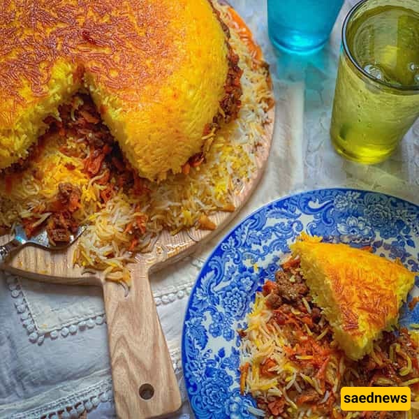 SAEDNEWS: Carrot Tahchin is an elegant and incredibly delicious dish made by combining rice with carrots, chicken fillet, onions, barberries, saffron, and more.