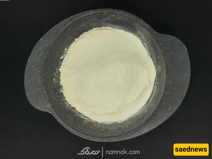 Sift the flour about three times to make it light and airy. Place it in a suitable pan over medium heat and toast it, stirring constantly until it loses its raw taste and turns a creamy color.