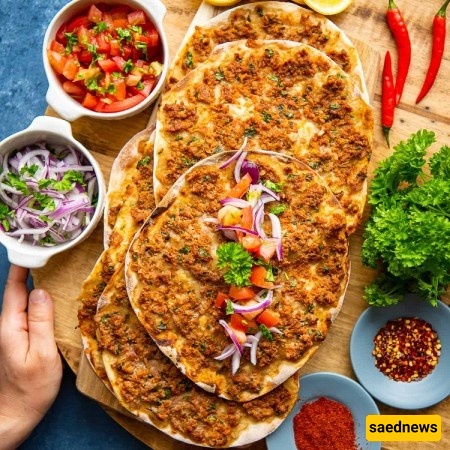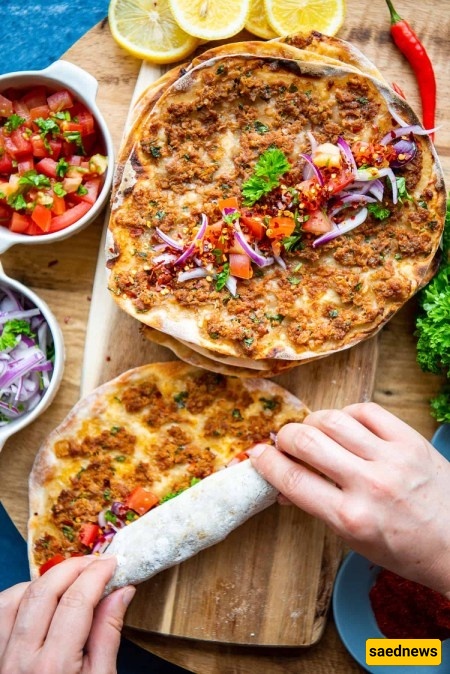 SAEDNEWS: Lahmacun, also known as “Turkish pizza,” is a popular and flavorful dish made with thin flatbread topped with minced meat and vegetables. The origins of this food trace back to the Middle East, and in Turkey it is commonly served as either an appetizer or a main course.