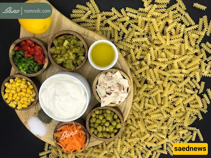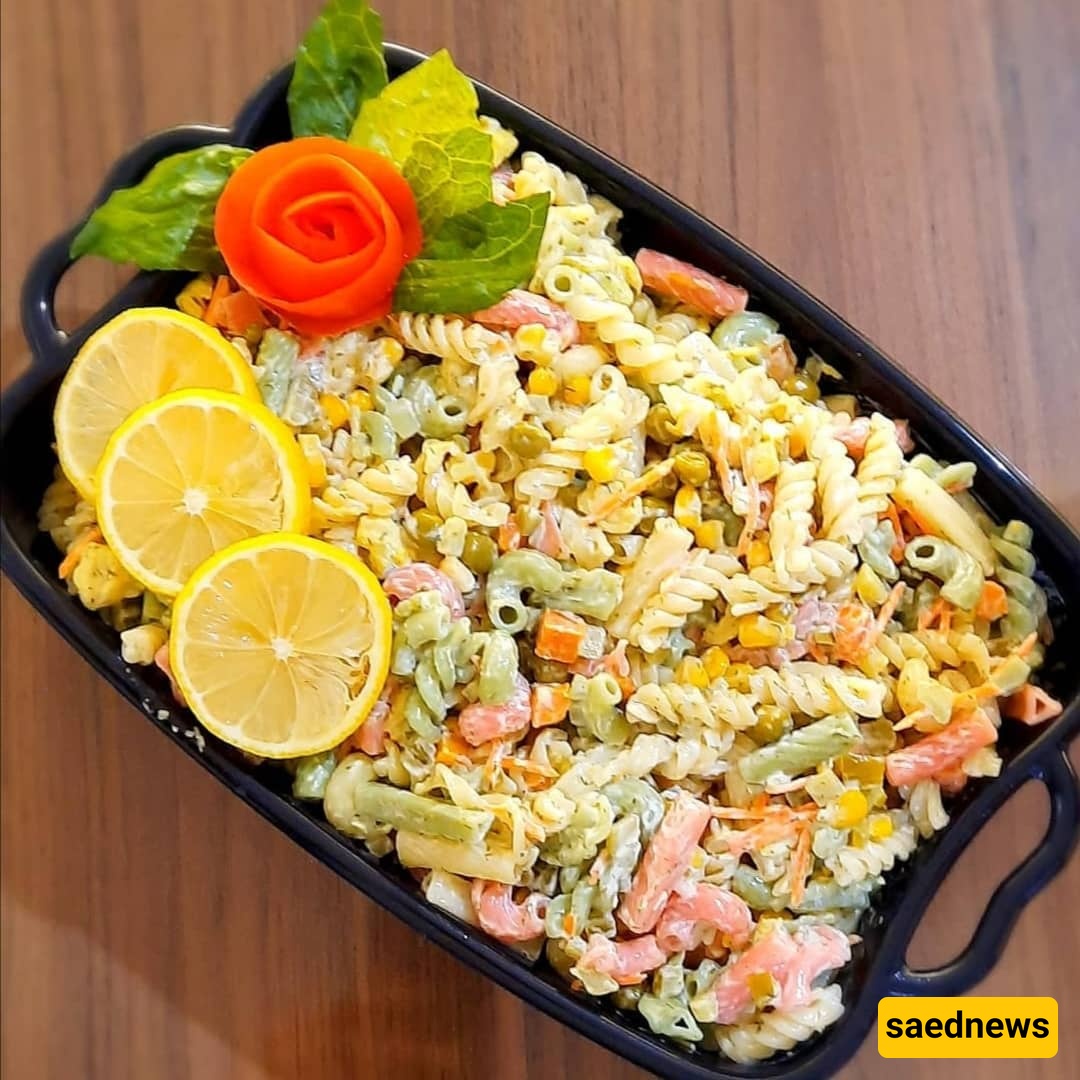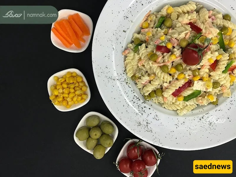 Pasta salad is a popular and elegant Iranian dish that is often served as a salad, and in some gatherings, even as an appetizer. You can also enjoy it as a complete meal. For variety, you might try recipes like chicken pasta salad or tuna pasta salad.