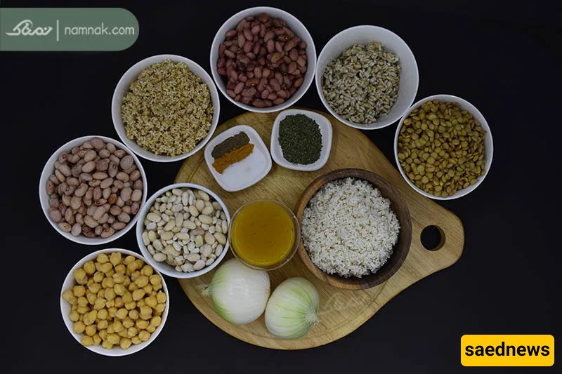 Traditionally, seven types of legumes were used, sourced from neighbors.