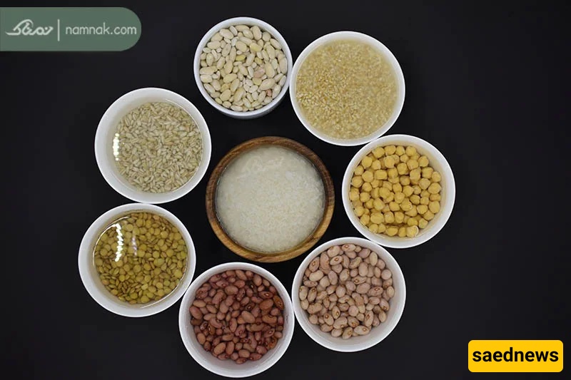 Drain the legumes after soaking and cook each type separately, except for wheat, rice, and barley.