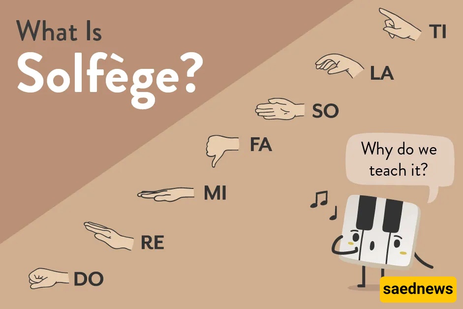 Solfege (from French, also called Seraayesh in Persian) is a system that helps singers understand the structure of music. It emphasizes learning notes and pitch. The notes Do, Re, Mi, Fa, Sol, La, Ti, Do serve as the alphabet of music, helping singers recognize and match melodies.