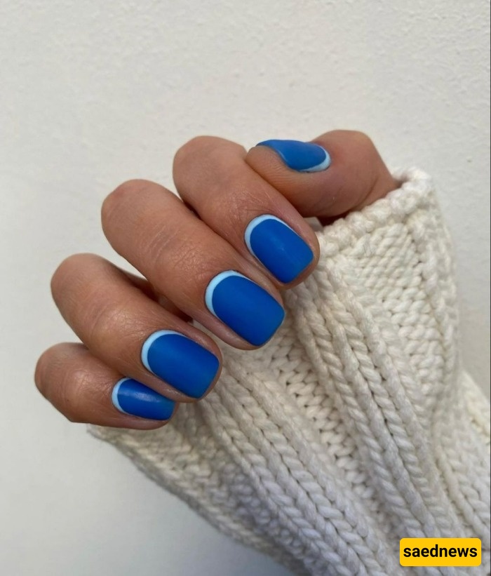 The top trends for short nails this year include reverse French tips with special colors, chrome and metallic nails in pearly, silver, metallic blue, or diamond green shades, dark and stylish mattes, natural and minimalist designs, geometric patterns with clean lines, and more.