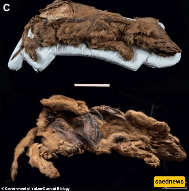 According to the social affairs section of Saed News, this remarkably preserved mummy was discovered by a gold miner in Canada’s Yukon region. Archaeologists report that parts of the wolf pup’s head, tail, furry paws, and teeth have survived exceptionally well over time.