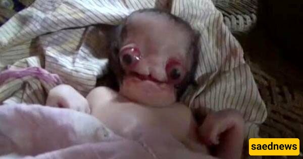 According to Saed News’ social affairs service, citing Eghtesad Online, a newborn in India has captured headlines after being born with a rare facial malformation that gives it an unusual, almost extraterrestrial appearance.