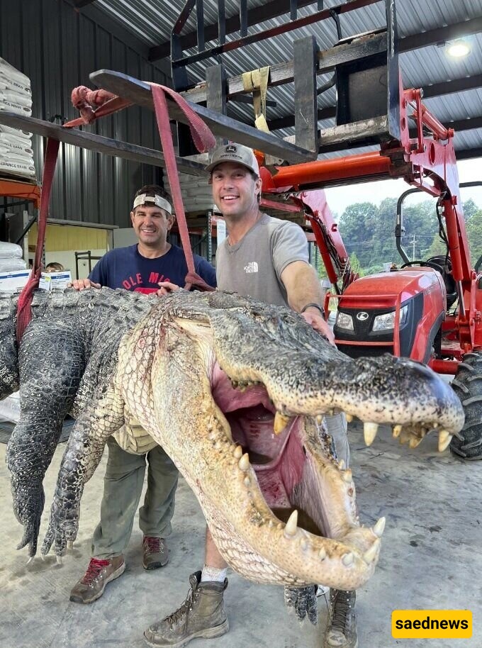 According to Saed News, a group of hunters from Forest City, USA, has captured the largest alligator in Mississippi’s history. The massive reptile weighs 364 kilograms (802 pounds) and measures 3.4 meters (11.2 feet) long. Its girth around the belly and tail are 167.64 cm (5.5 feet) and 118.11 cm (3.9 feet), respectively. After the hunt, the Forest City hunters used a forklift to lift the alligator and posed for photos with it.