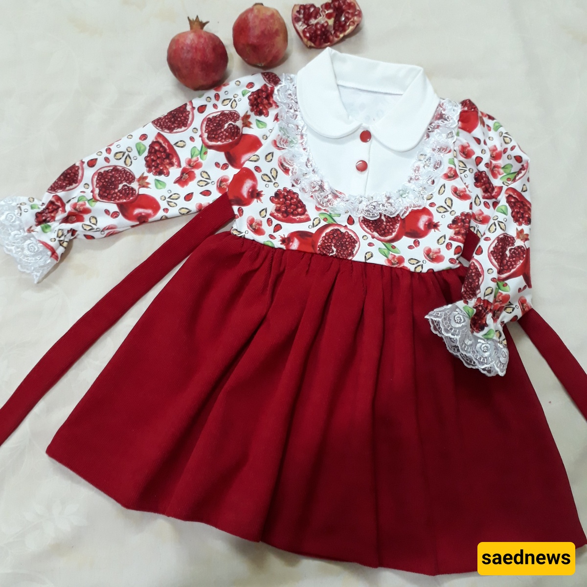 Pomegranate-patterned pinafores are among the most special choices for Yalda outfits, especially for girls born in January. The pomegranate symbolizes abundance and happiness, making it a perfect match for Yalda night. Pair the pinafore with a white or cream inner blouse for a cute and lovely look. This style is especially adorable for little girls and is highly recommended for toddlers and young children.
