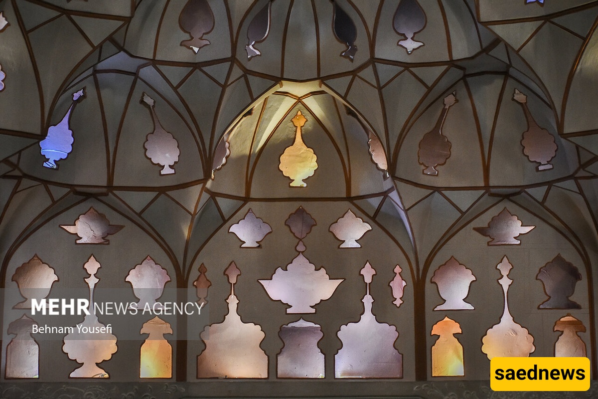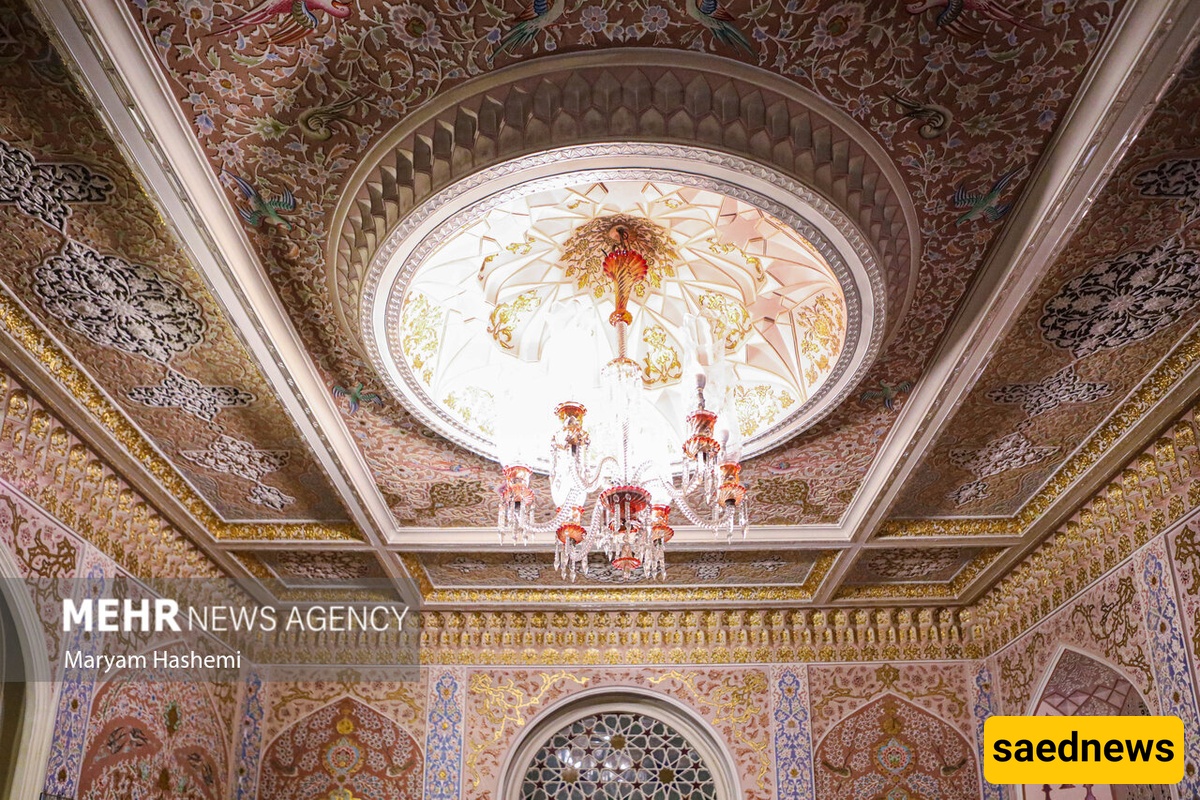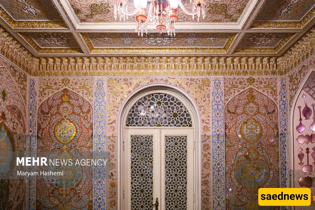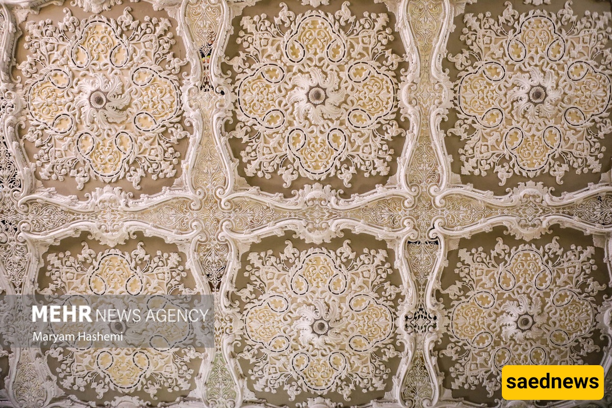 Hossein Khodadad’s passion for Iranian art is evident in the Esfahani Room, designed to stand out from the rest of the mansion. Its plasterwork features deep, ornamental shapes inspired by the music room of Isfahan’s Ali Qapu Palace and other Safavid monuments. The ceiling mirrors the intricate design of Isfahan carpets, enhanced with detailed brickwork.