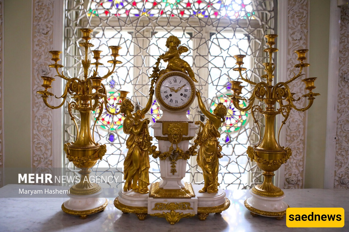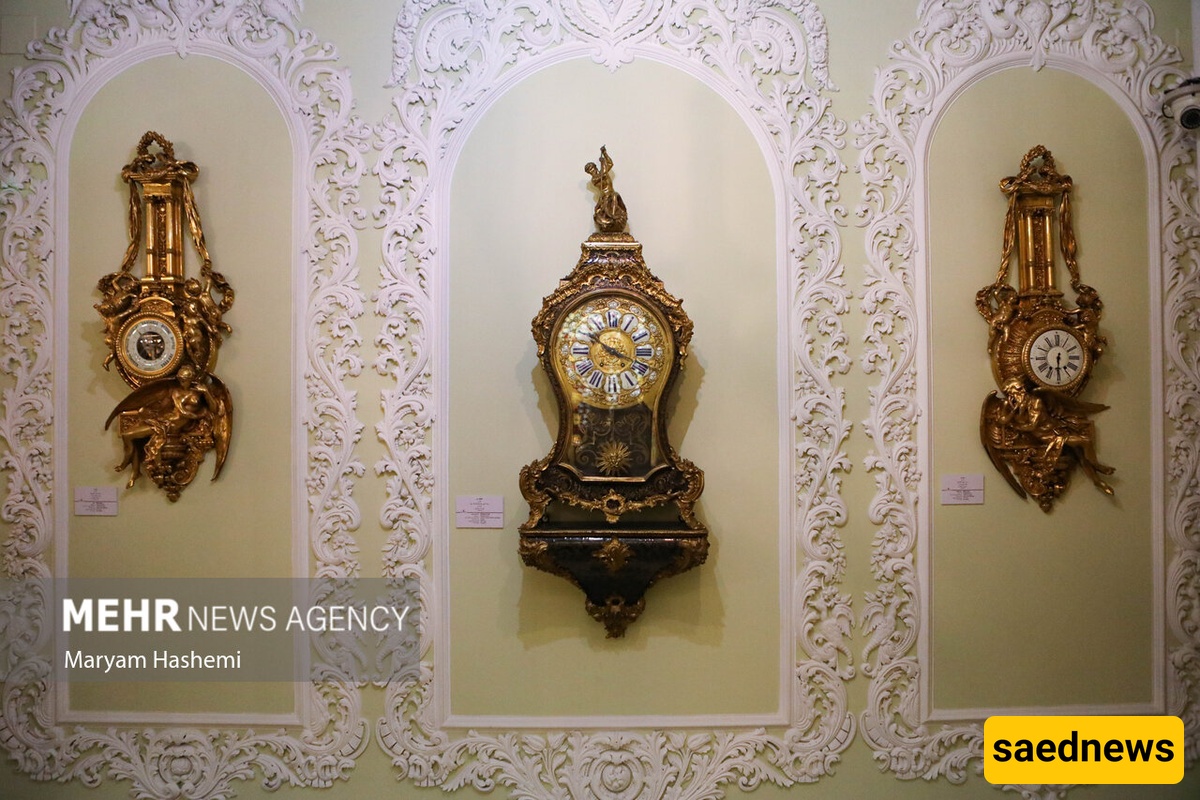 Inside, the first-floor lounge exhibits clocks from the 17th to the 20th centuries, including pendulum, desktop, wall, and standing clocks. Many pieces are intricately decorated, reflecting the importance of artistry in clockmaking. Some were gifts to political figures, while others were personal items, collected from Iran and countries such as England, France, Switzerland, and Germany.