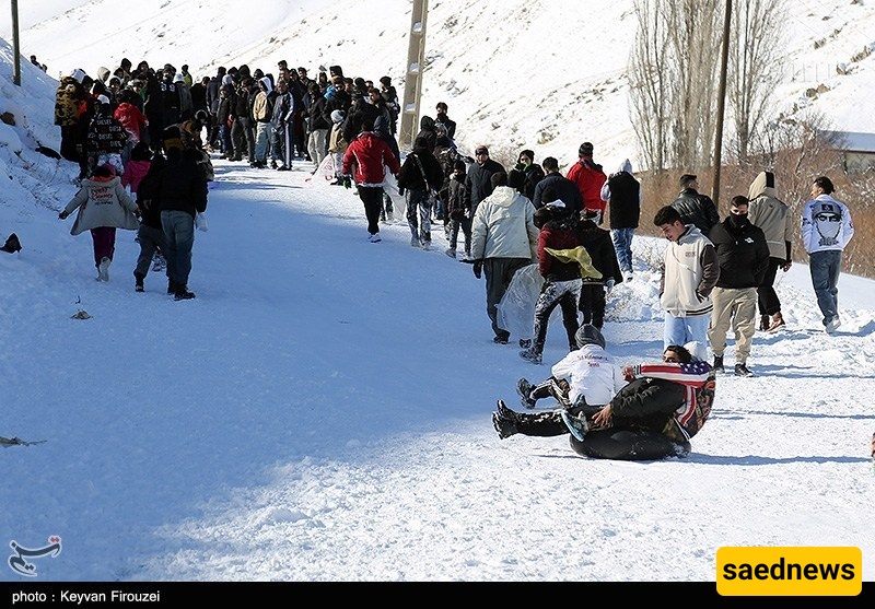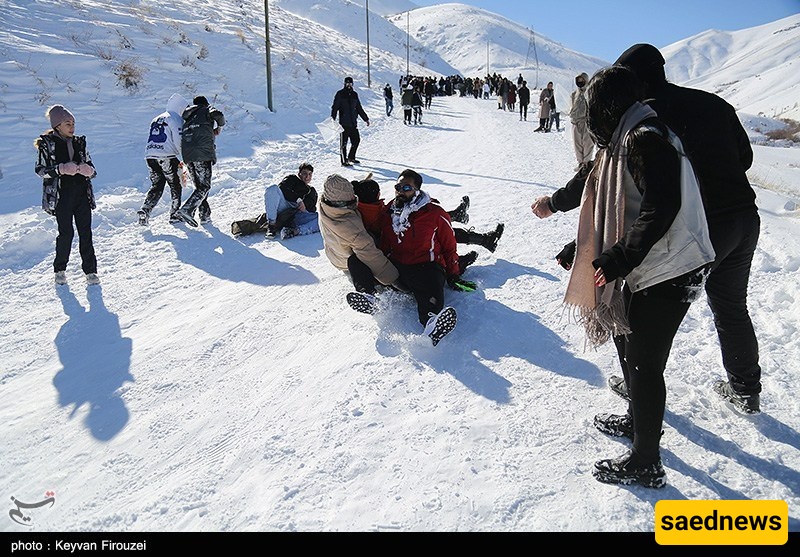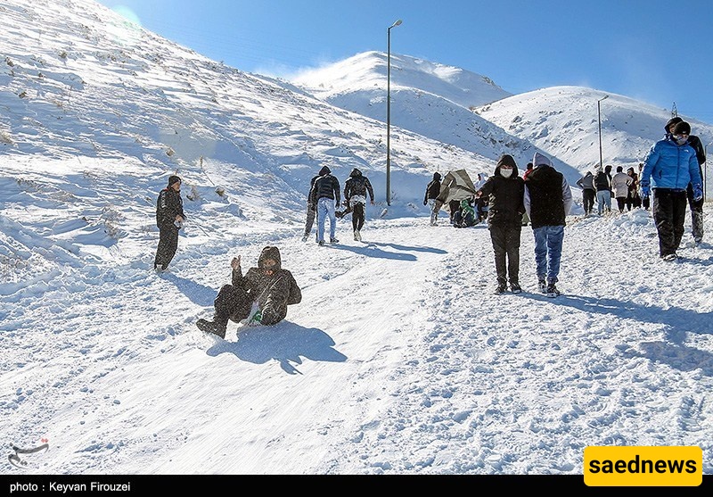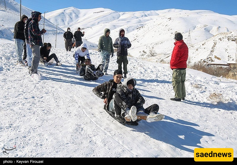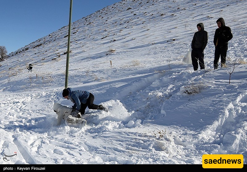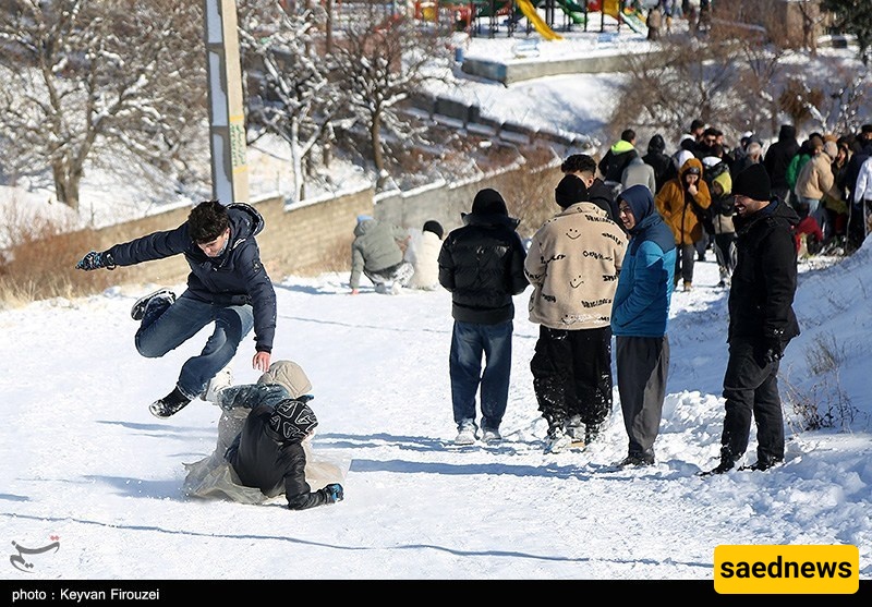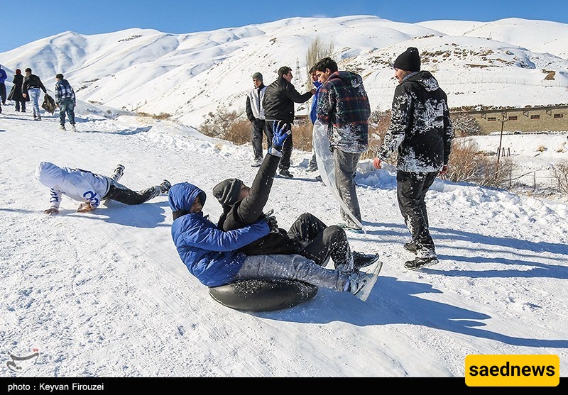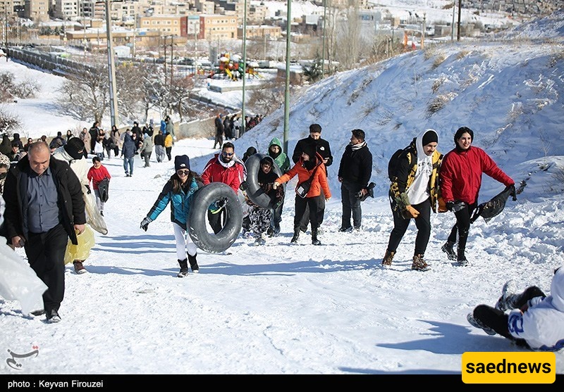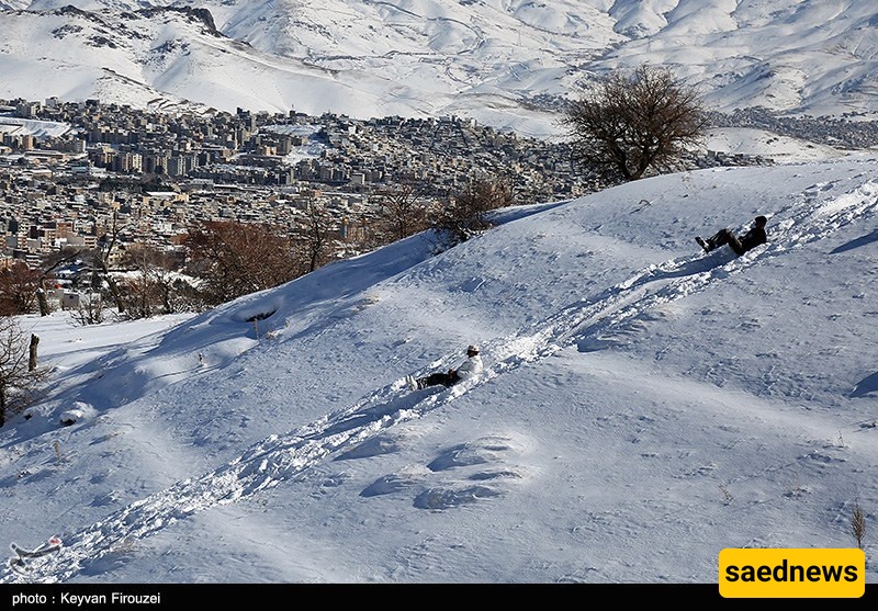 SAEDNEWS: Heavy snowfall transformed the hills of Iran’s western city of Sanandaj into a lively winter playground, as young people gathered to slide down snow-covered slopes on large rubber tubes, turning the cold day into a scene of excitement and shared laughter.