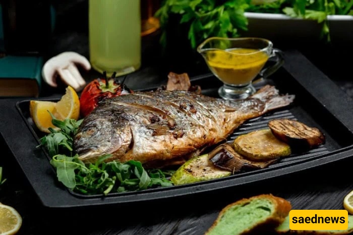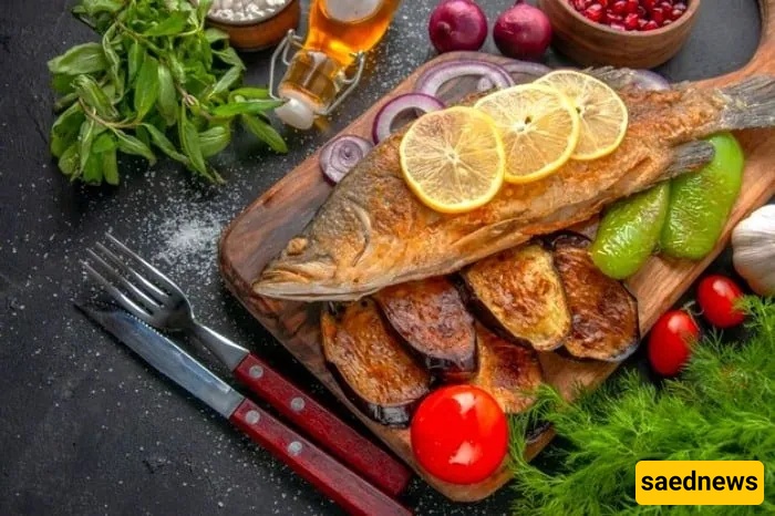 According to traditional Iranian medicine, fish has a cold temperament. Eating it with cold foods may cause digestive discomfort. To balance this, fish is traditionally paired with warming herbs and spices such as dill, garlic, coriander, cumin, ginger, cinnamon, black pepper, or golpar. Eating a few dates after the meal is also believed to help balance the body.