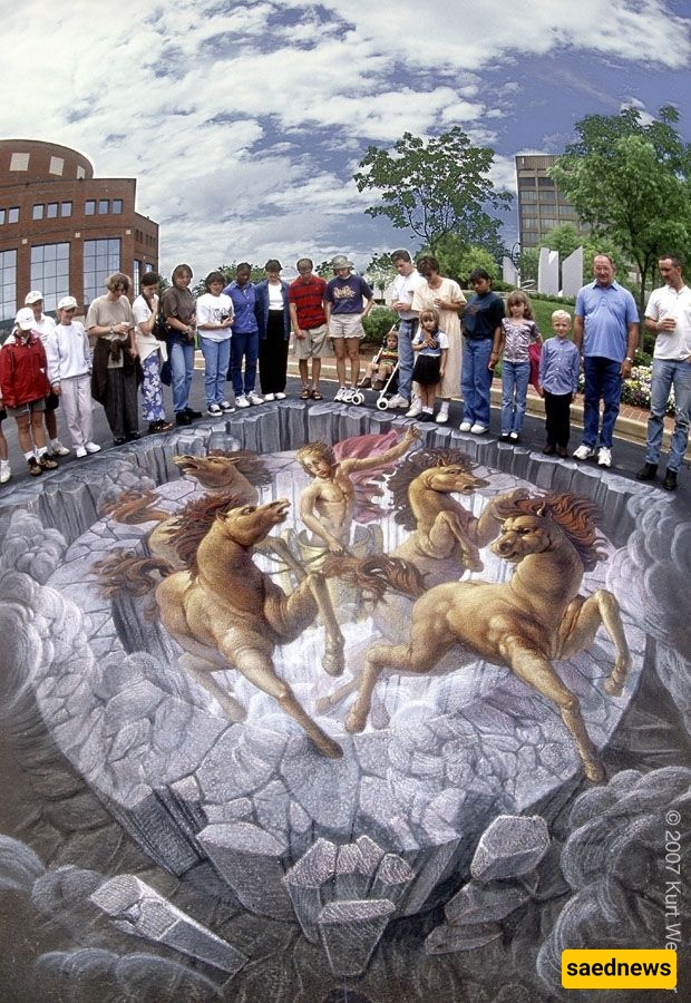 SAEDNEWS: Kurt Wenner, an American artist and former NASA illustrator, is renowned for his three-dimensional, surreal paintings on the ground—images so lifelike that it’s hard to believe they were created with chalk on a flat surface.