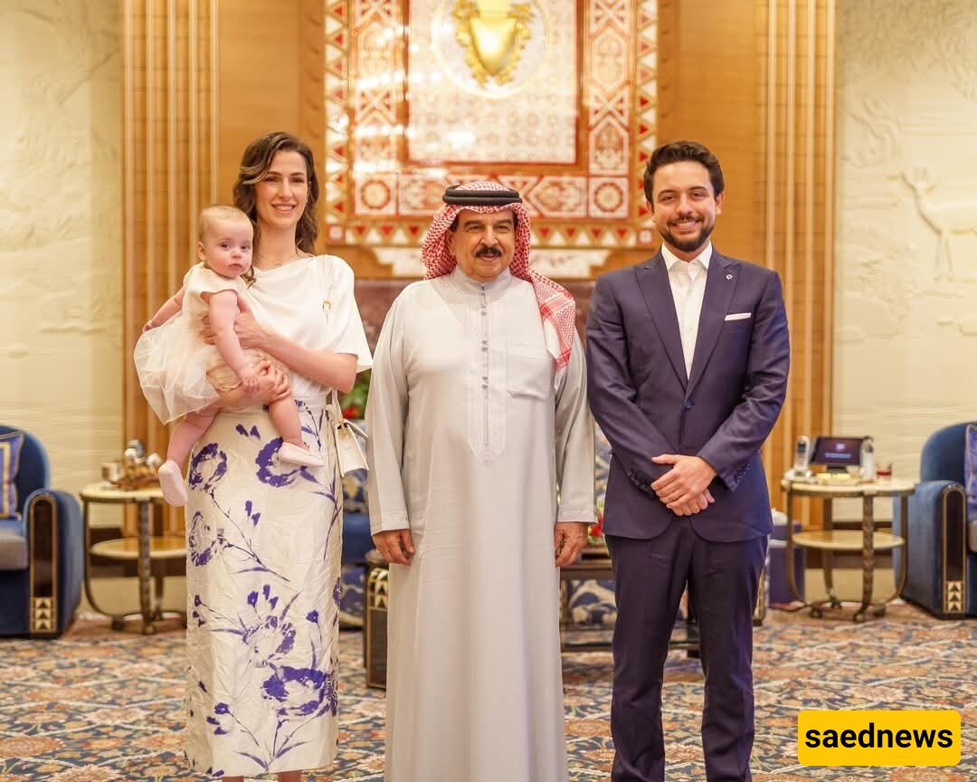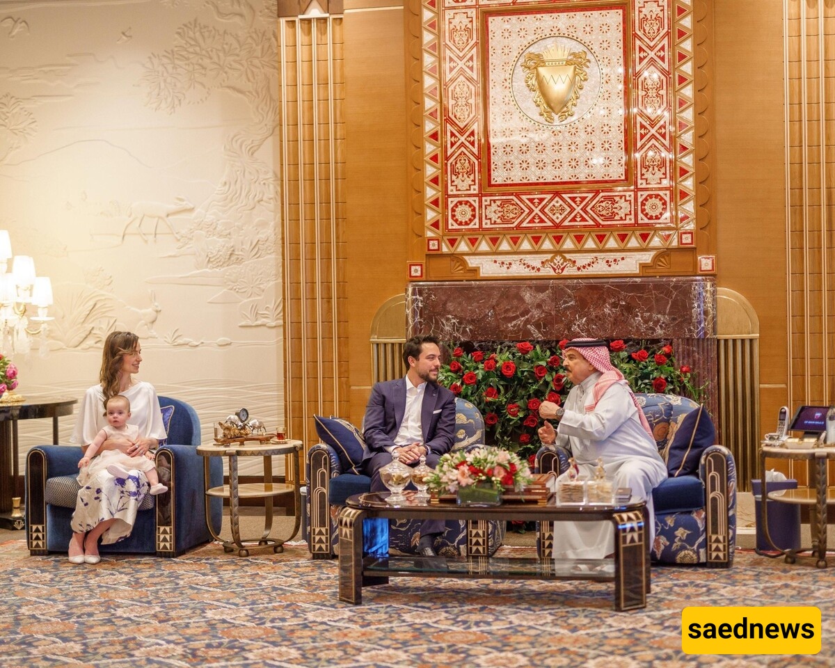 According to a report by Saed News, citing Fararu, images have been released of Crown Prince Al Hussein bin Abdullah II of Jordan, his wife Princess Rajwa, and their young daughter Princess Iman during a meeting with the King of Bahrain.